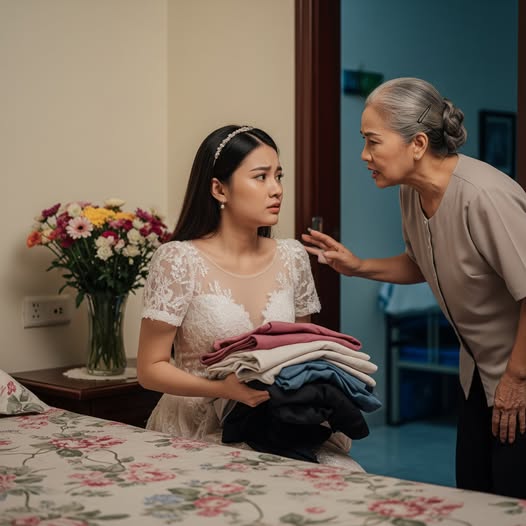 Tôi sững người. Tim đập loạn. Tôi còn chưa kịp hiểu thì bác đã trừng mắt, ra hiệu im lặng. Ánh mắt ấy không phải đùa. Một loại sợ hãi bản năng khiến tôi run lên, tay bất giác nắm chặt vạt váy cưới. Tôi nghe rõ tiếng chân người đàn ông – chồng mới cưới – đang tiến về phía phòng.